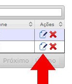 - Ou na coluna Ações, clicar na folha com lápis para editar.