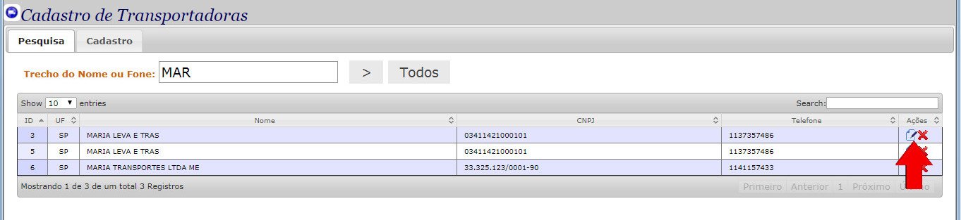 - Para Alterar os dados, só dar um duplo clic, ou na coluna Ações, clicar na folha com lápis para editar.