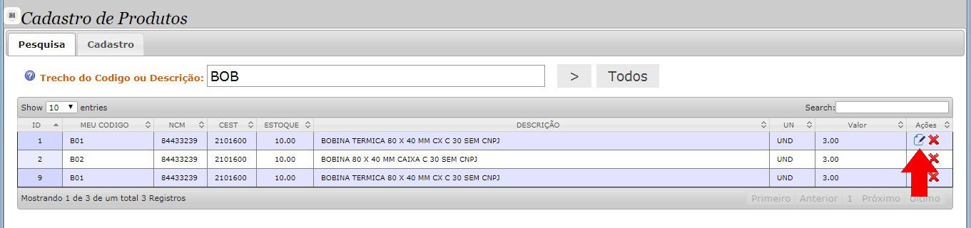 - Para Alterar os dados, só dar um duplo clic, ou na coluna Ações, clicar na folha com lápis para editar.