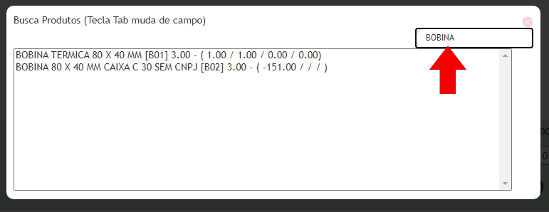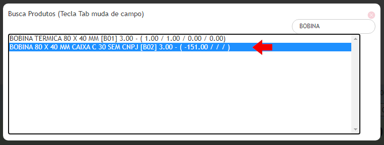 Com a tecla seta para cima ou para baixo, bem como o mouse selecione o item desejado e tecle ENTER para inserir no pedido