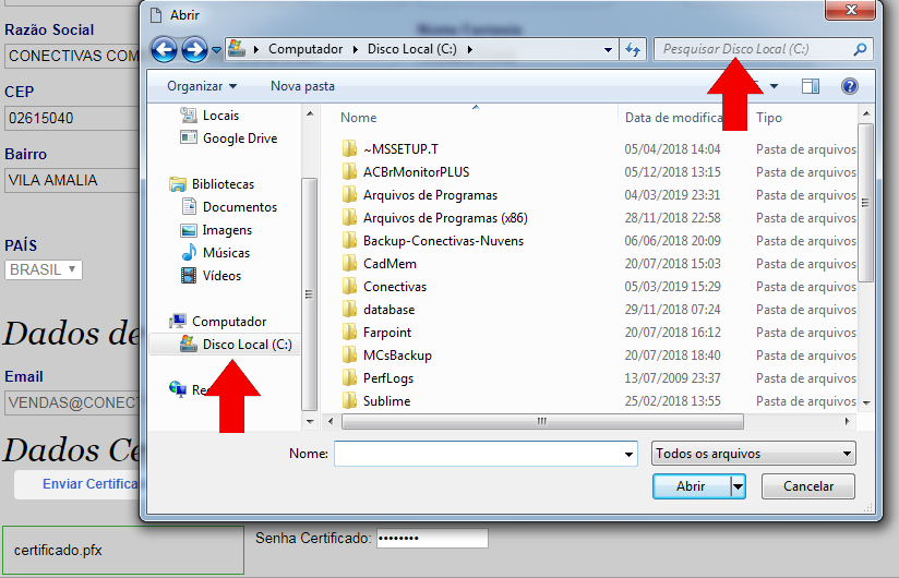 - Vai abrir para procurar em seu computador o Certificado Digital
