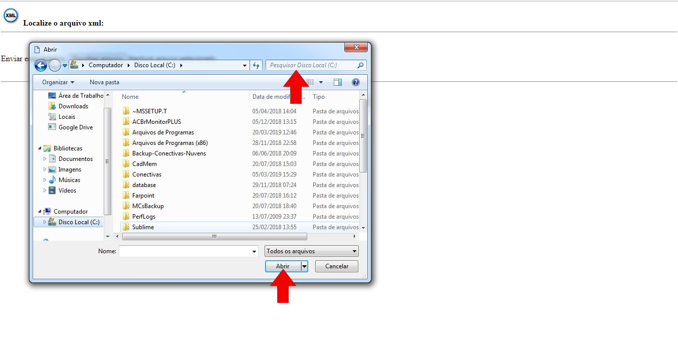 - Vai aparecer a tela para procurar o arquivo em seu computador, digite o nome doarquivo .XML, clic em Abrir