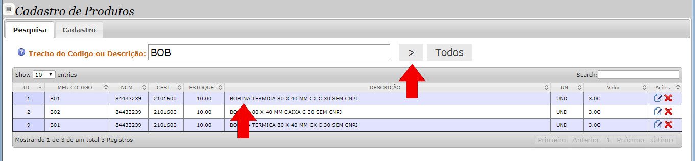 - Clic em Todos, para trazer todos os produtos cadastrados.