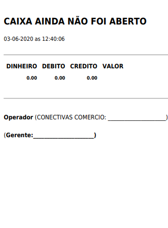 - Confirme clicando no OK ou ENTER, o caixa será fechado e ira aparecer os recebimentos resumidamente, caso contrário você não abriu o caixa ainda, conforme exemplo a abaixo.