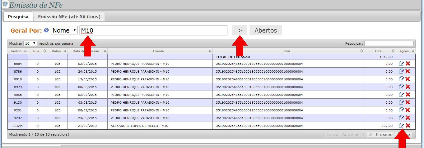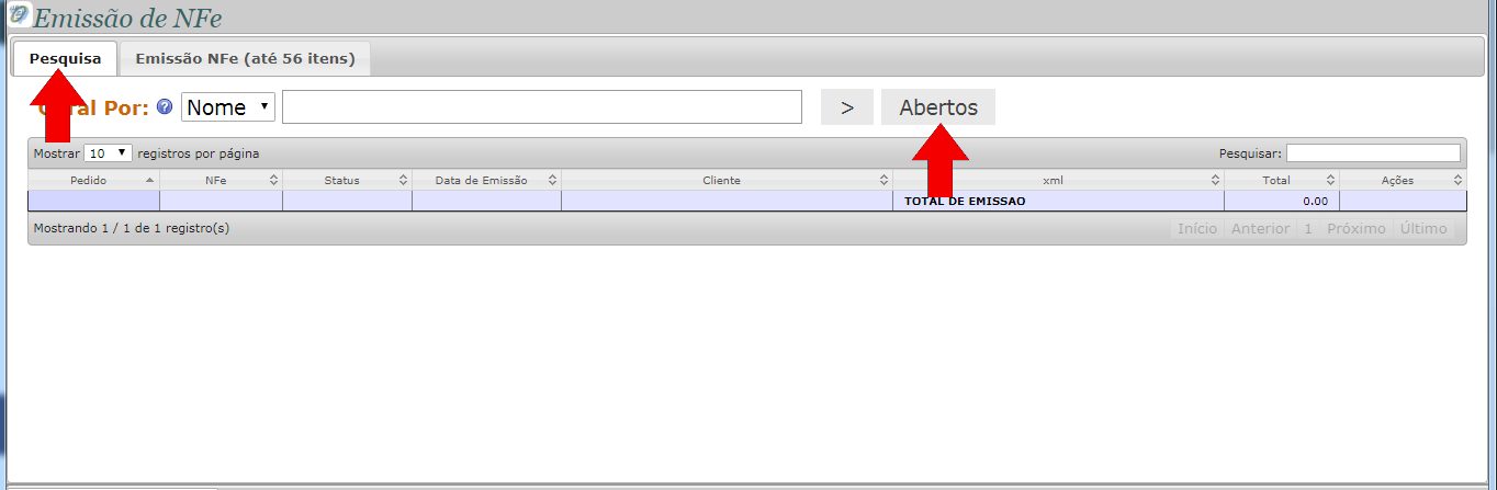 - Para Pesquisar todas as notas abertas clic no botão Abertos