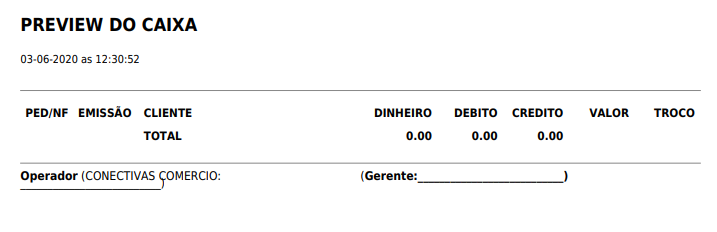 A impressão de previa deve ser direcionada para um impressora normal 80 colunas e não serve como fechamento de caixa.